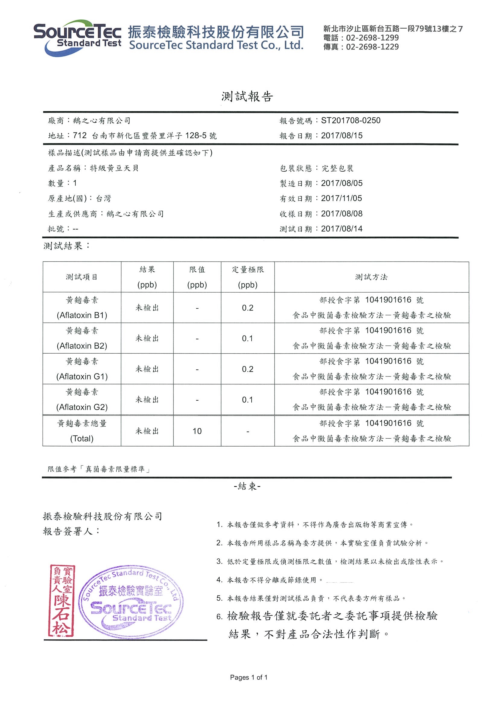 黃麴毒素測試