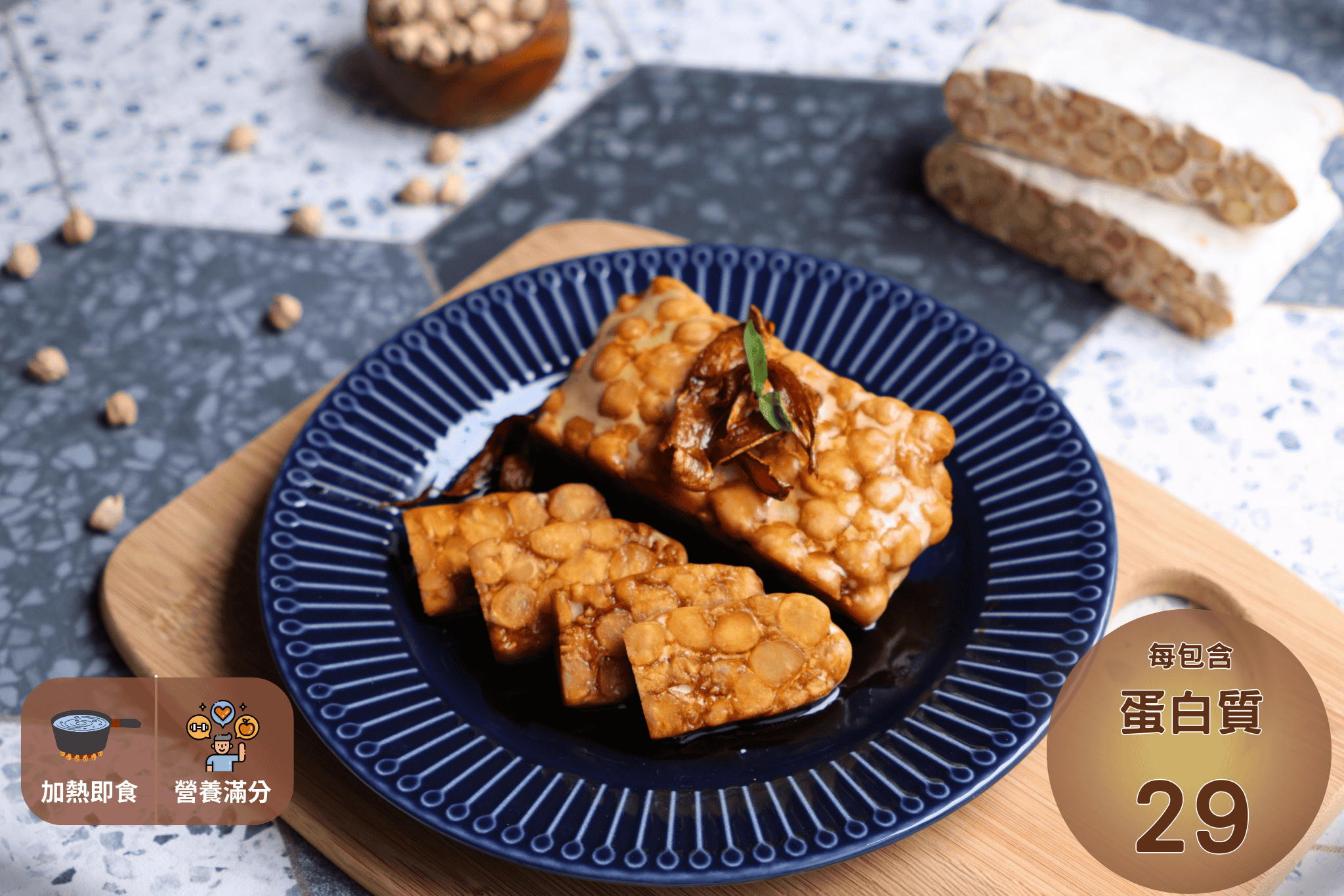 天貝是一種來自印尼的傳統發酵豆製品,選用豆類( 大多為黃豆 )作為原物料,經過天然發酵製成,富含優質植物蛋白質與各種營養價值,香氣十足、口感鬆軟厚實、有層次,被譽為植物界的「 超級食物 」。